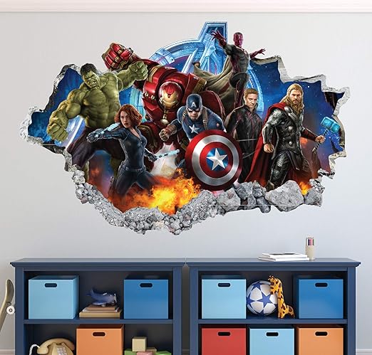 Amazon.com: Vinilo decorativo de pared de los Vengadores, diseño Vinilos Decorativos Infantiles Medidores Kit Superheroes flying STICKERS FOR KIDS | Baby boy room decor